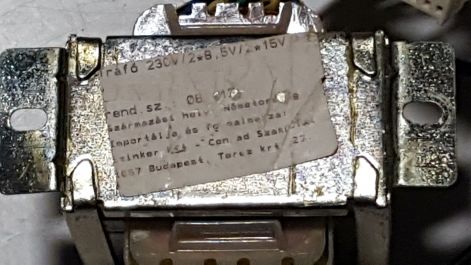 Transzformátor 2x8,5 V és 2x15 V szekunder,230 V primer tekercseléssel.